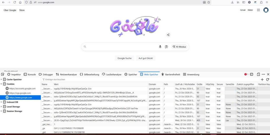 Firefox ⇾ Einstellungen ⇾ Datenschutz & Sicherheit: nach unten scrollen.