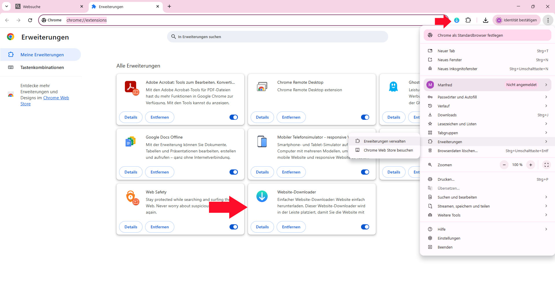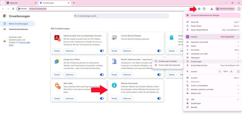 Suche nach „Website-Downloader“ und/oder aktivieren.