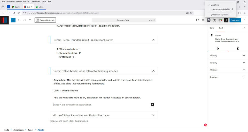 Falls die Menüleiste nicht da ist, einschalten mit rechter Maustaste im oberen Bereich.