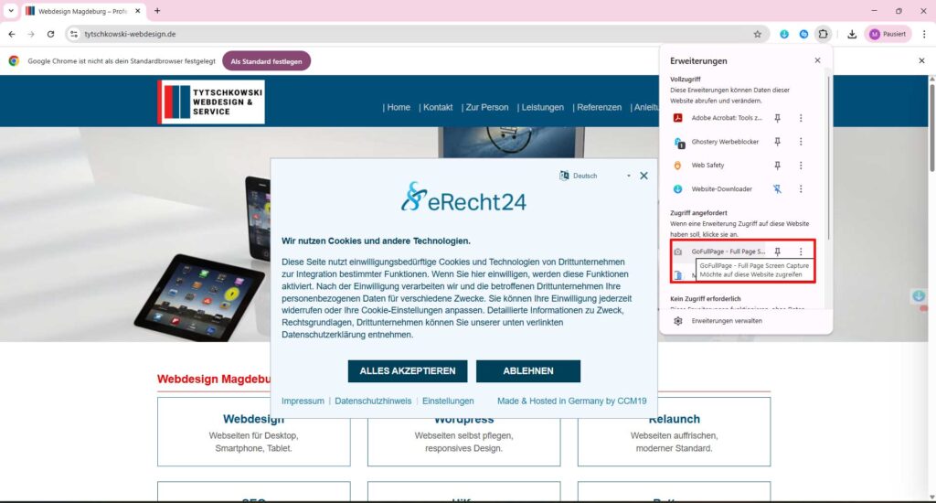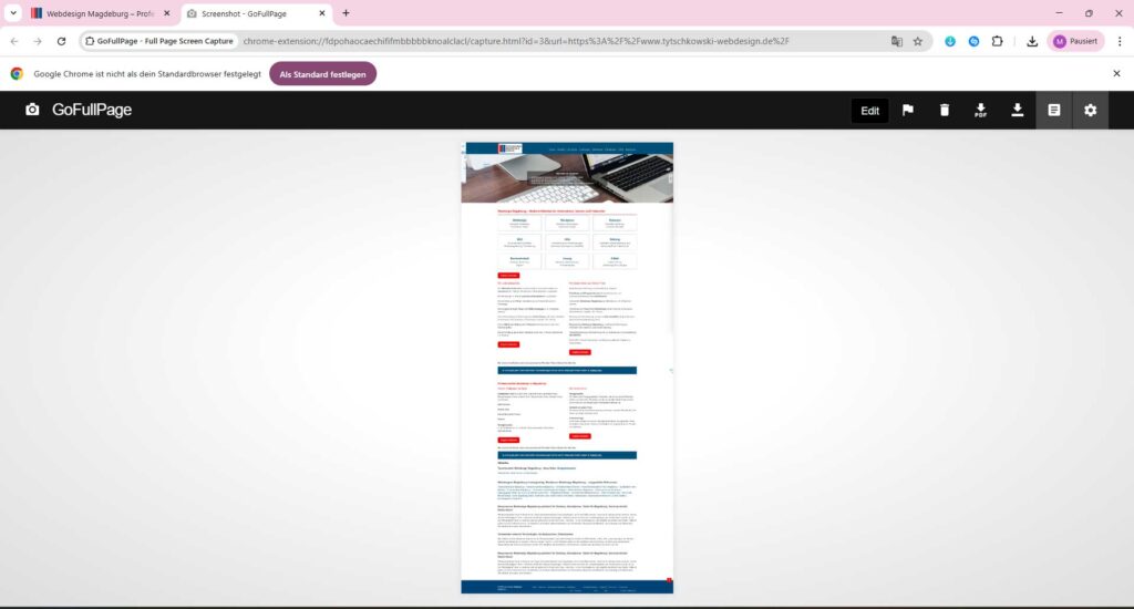 Erwweiterung „goFullpage“installieren. Aufrufen durch Klick auf das entsprechende Symbol, welches etwas versteckt sein kann.