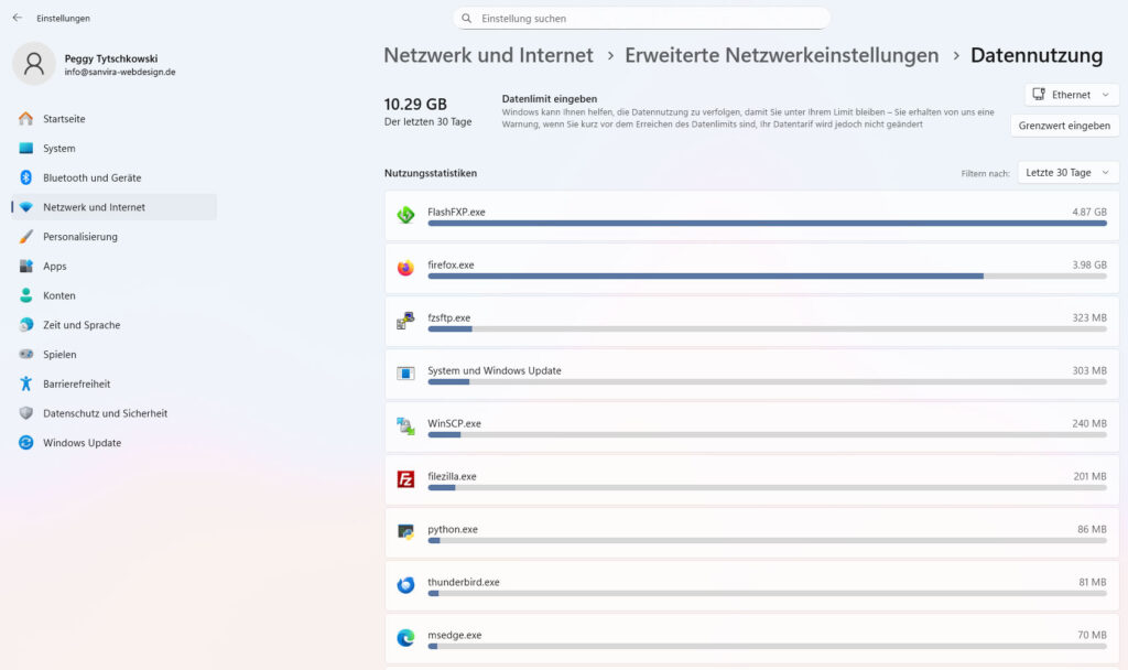 Eingabeaufforderung: netsh interface show interface