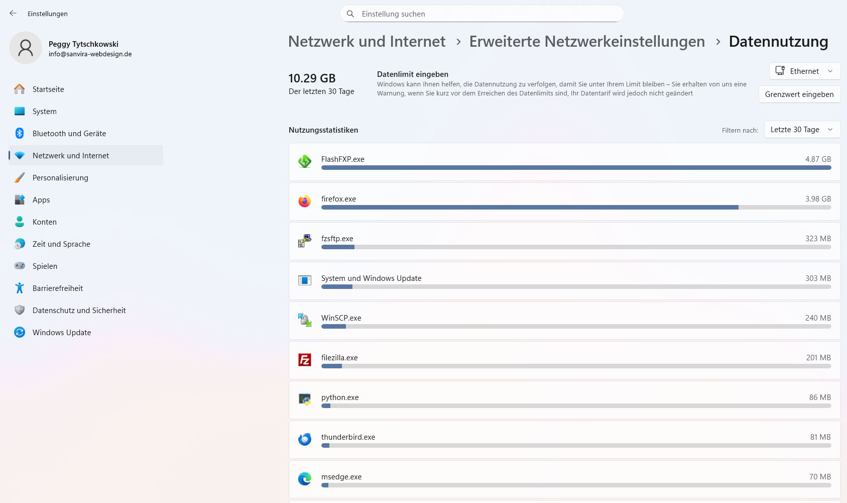 Eingabeaufforderung: netsh interface show interface