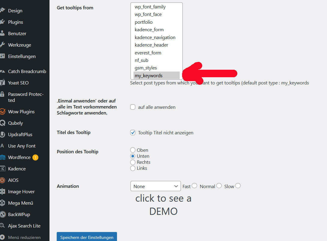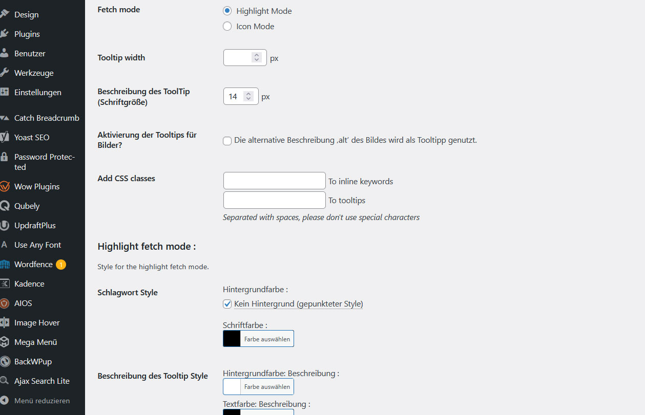 Tooltipps anlegen via „New Schlagworte“: Auf korrekte Schreibweise achten!