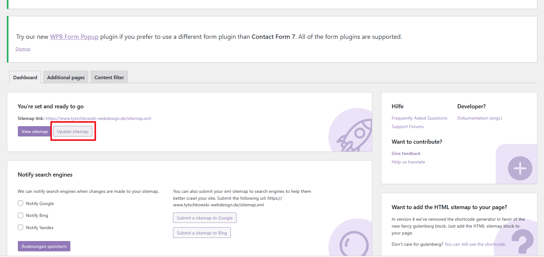Aktualisierung über …wp-admin/tools.php?page=csg-sitemap