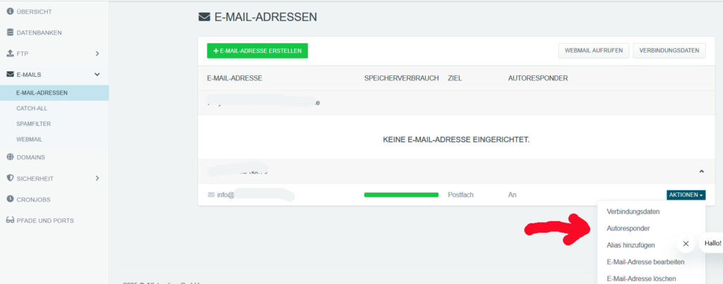 E-Mails -> E-Mail-Adressen -> Aktionen -> Autoresponder